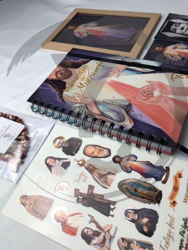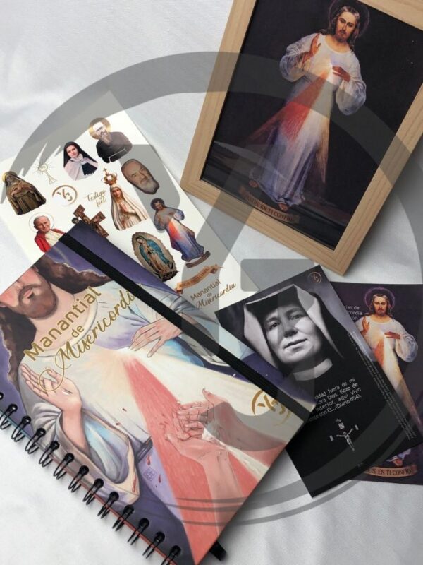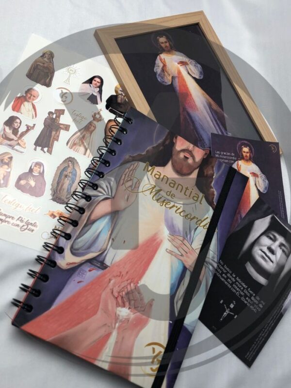 La agenda cuenta con un QR, el cuál podrás escanear y acceder a recursos digitales para aprender todo sobre la Devoción a la Divina Misericordia y también acceso a la Comunidad VIP de Manantial de Misericordia junto con YULI Y JOSH: Encuentros, Cursos y más.